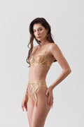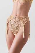 Shine all day in the AWENA collection’s Suspender, perfect for special occasions when you want to sparkle with luxurious elegance. Crafted with Italian-inspired embroidered lace and gold chain accessories, it enhances your curves with sophistication and confidence.