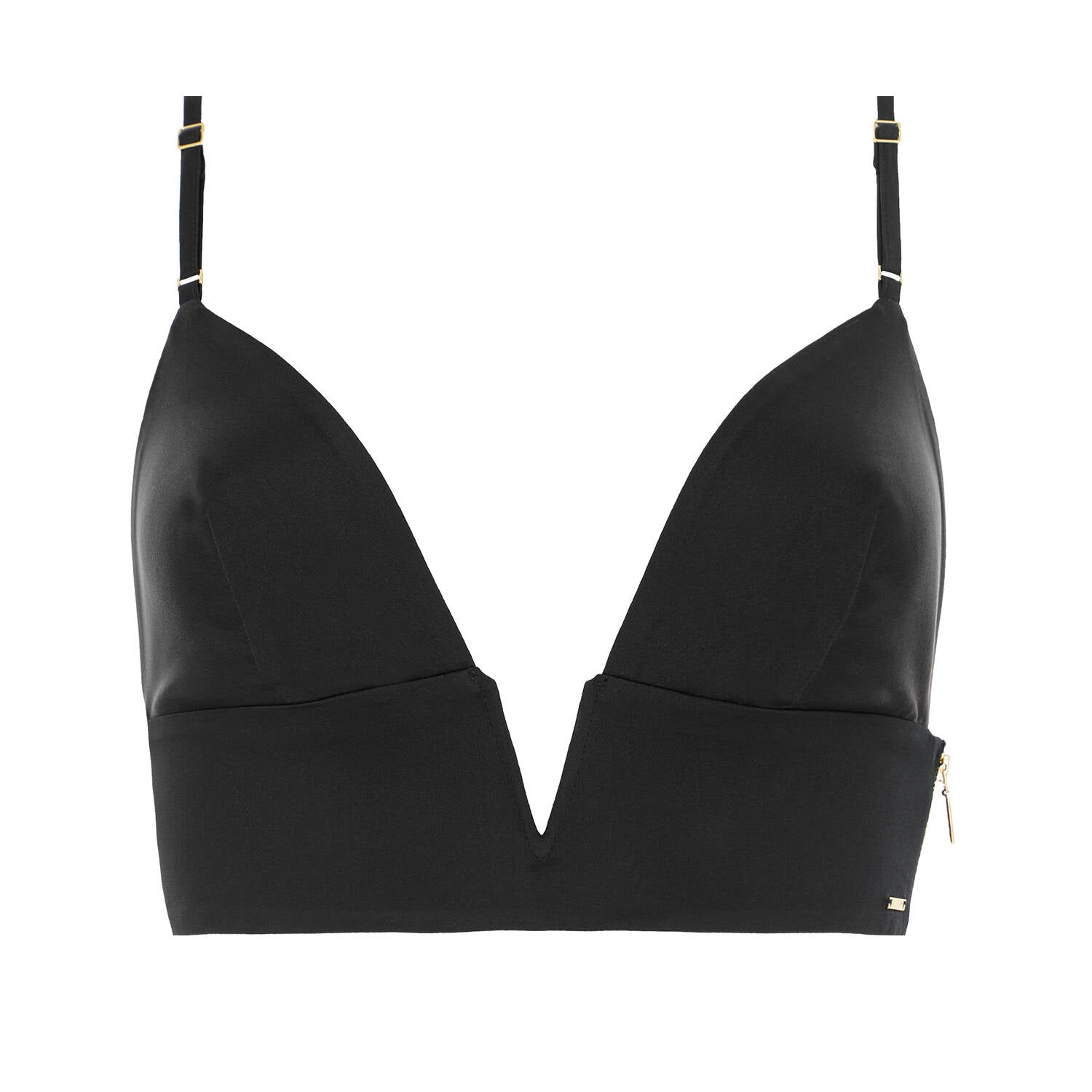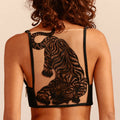 Triangle adorned with a tattoo-style embroidered tiger, enhancing the back for a sensual and powerful effect. Thin adjustable strap, plunging neckline, opening with a gold zip with LIVY logo on the side.