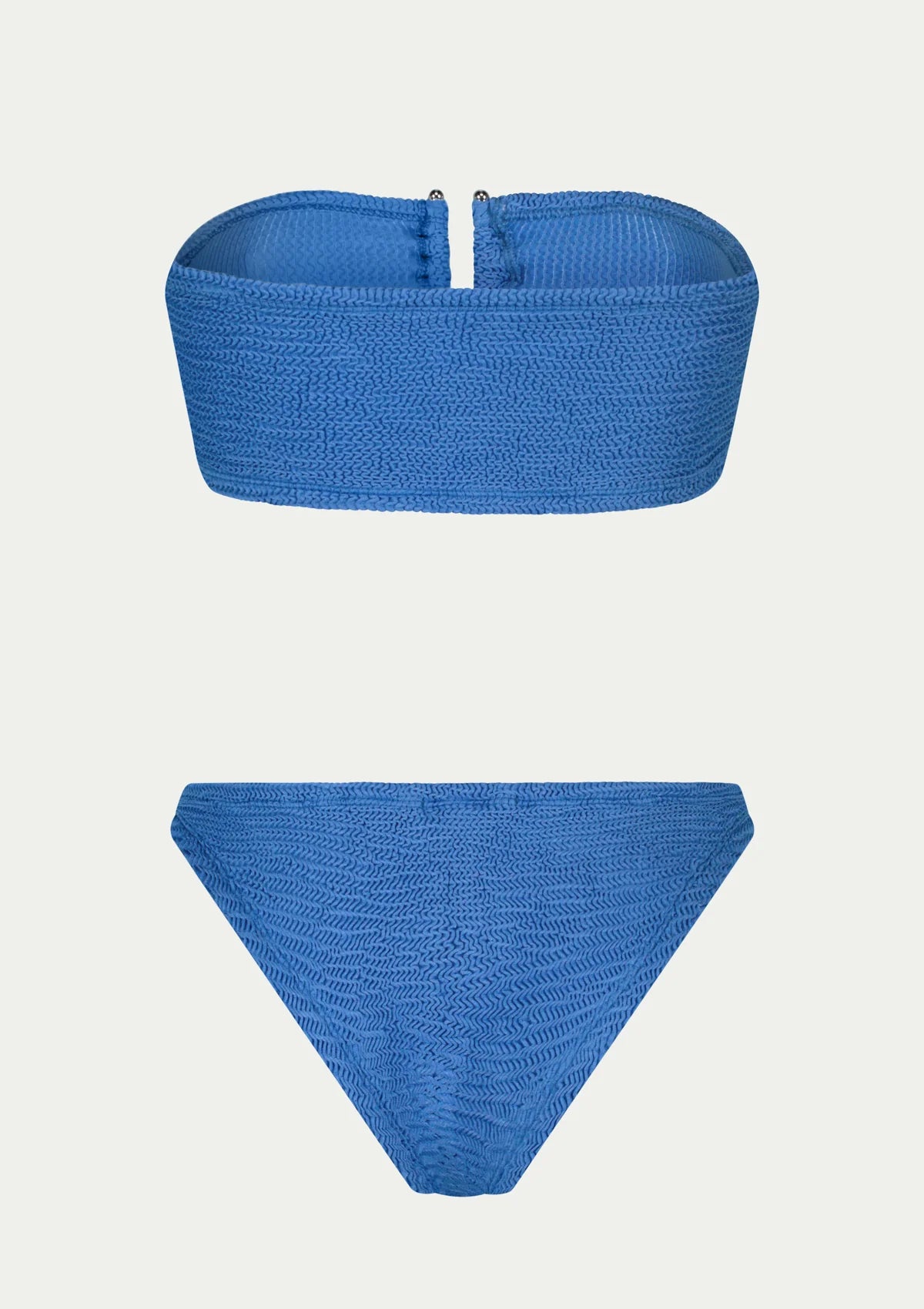 Two piece swimsuit FRIDA AZURE by PARAMIDONNA.This style fits through sizes from XS to 2XL. The top represents a classic bandeau bikini style featuring a hook accent at the front and a delicate cut. The bikini bottom is low waisted. To maintain the swimsuit’s high elasticity and bright color, please hand wash it with soap and warm water. Do not tumble-dry, only air-dry.