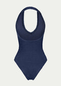 JULIA One-Piece Swimsuit by PARAMIDONNA. The JULIA swimsuit is a lovely one-piece silhouette crafted in a universally flattering size. Designed to enhance the natural shape of the body, it features a graceful V-neckline that gently gathers and accentuates the bust, complemented by a supportive strap that ties at the neck for added stability. The open back lends a sophisticated allure while elongating the figure. Made from exceptionally stretchable, high-quality fabric, this design adapts beautifully to various body types—ideal for both fuller and smaller natural busts.
