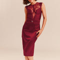 This underwired, couture - style bodysuit combinesquilted silk satin and floral lace for a refined andsophisticated look . Its round neck and signature gold zipper on the back add a touch of modern elegance .