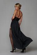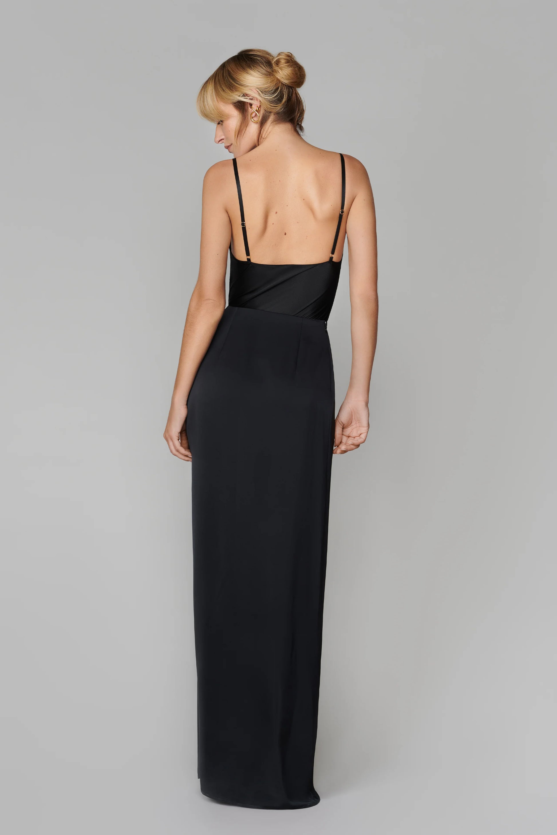 This high-waisted pencil skirt features a wrap-around design that gives this piece timeless elegance and charm. It is made from double-sided opaque satin for softness, a flowing style and incomparable quality. It has a seductive look with its provocative open design at the side to show off the legs. The invisible zip fastening on the side ensures a snug fit and a sleek finish.